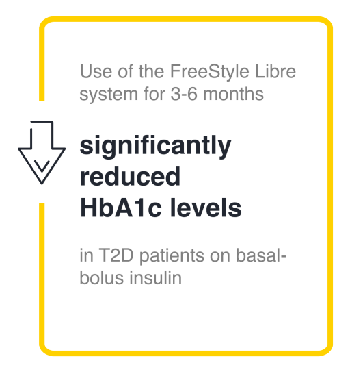 After 3–6 months of use, the FreeStyle Libre system significantly reduced HbA1c levels in T2D patients on a basal-bolus insulin regimen.